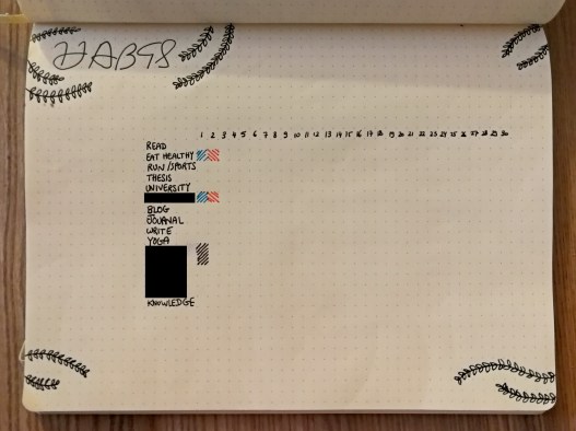 I just drew bunch of twigs with leaves and it actually turned out pretty awesome! I colored them 3 shades of green just to give it more texture and add some colors to the pages.