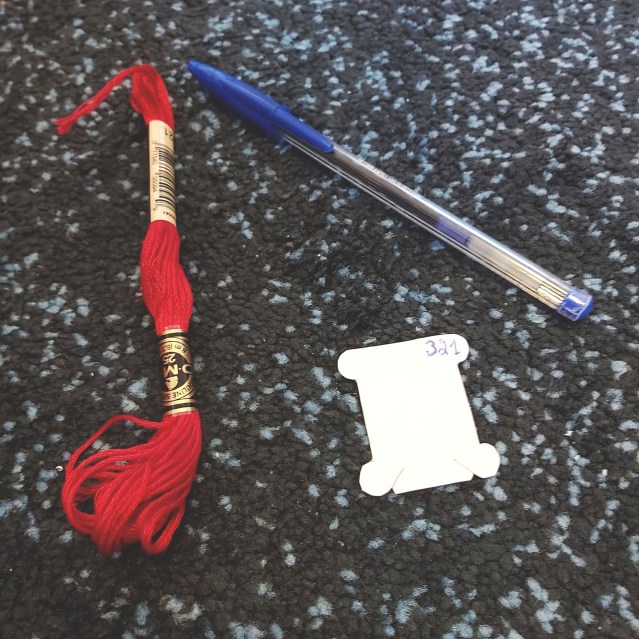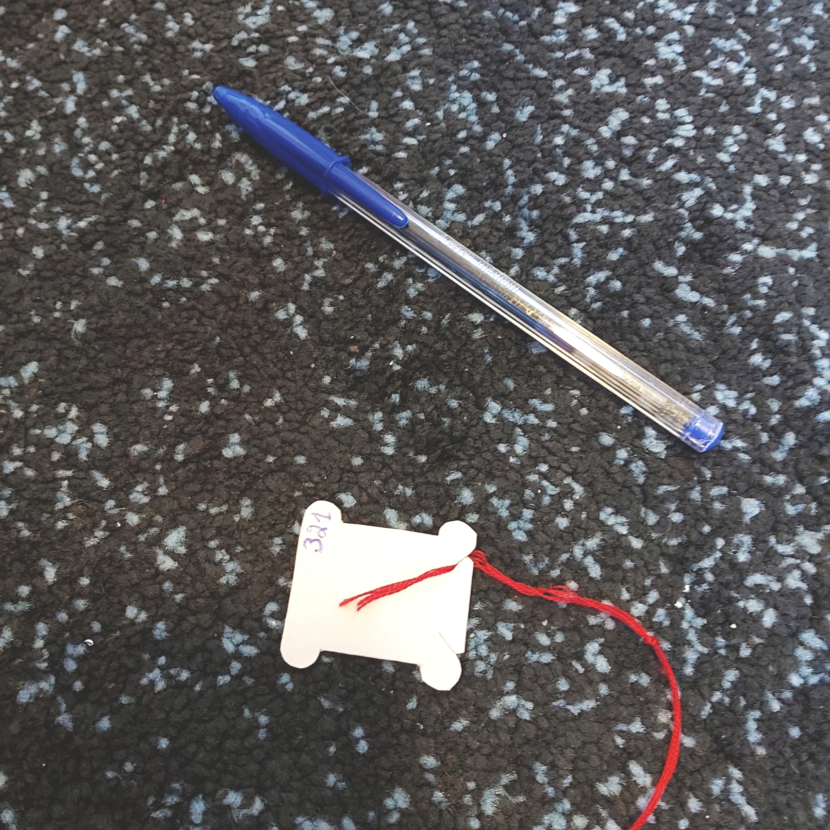Since I make the bobbins out of cardboard, I use a pen to label them. If not, you can use the wrapping paper tube with the floss number and stick it to the floss bobbin, or even stickers.