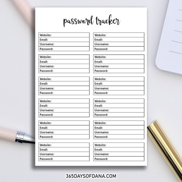 It is pretty straight forward. Download the printable and jot down the websites, usernames, emails, and passwords. Aaand you’re done! The next time you consider pressing “forgot my password,” come back to this printable and check all of your tracked passwords!