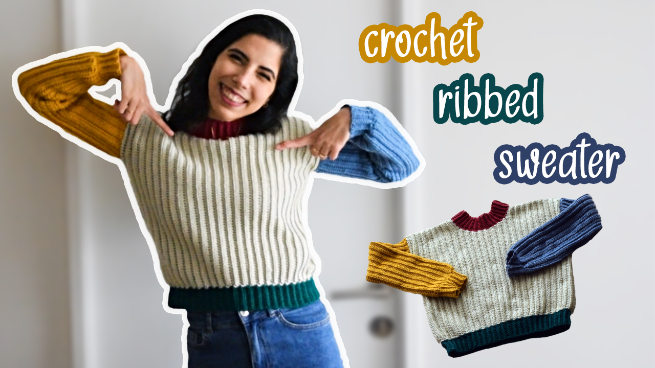 I wanted to crochet a sweater that was kind of unique, but also fun; hence the color-blocking. In all honestly, I originally planned to only have the sleeves in different colors, but I ran out of yarn for the collar and ribbing and did not want to wait till I ordered new ones online. But I love the end result even more this way!