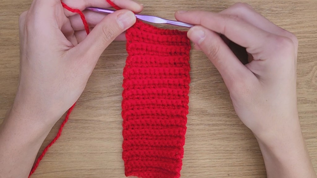 Fold the ribbing in half, align the two edges, ch1, and sl st the two ends together to close the cuffs (12)