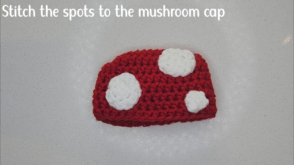 Stitch the mushrooms spots onto the mushroom head using the tails.