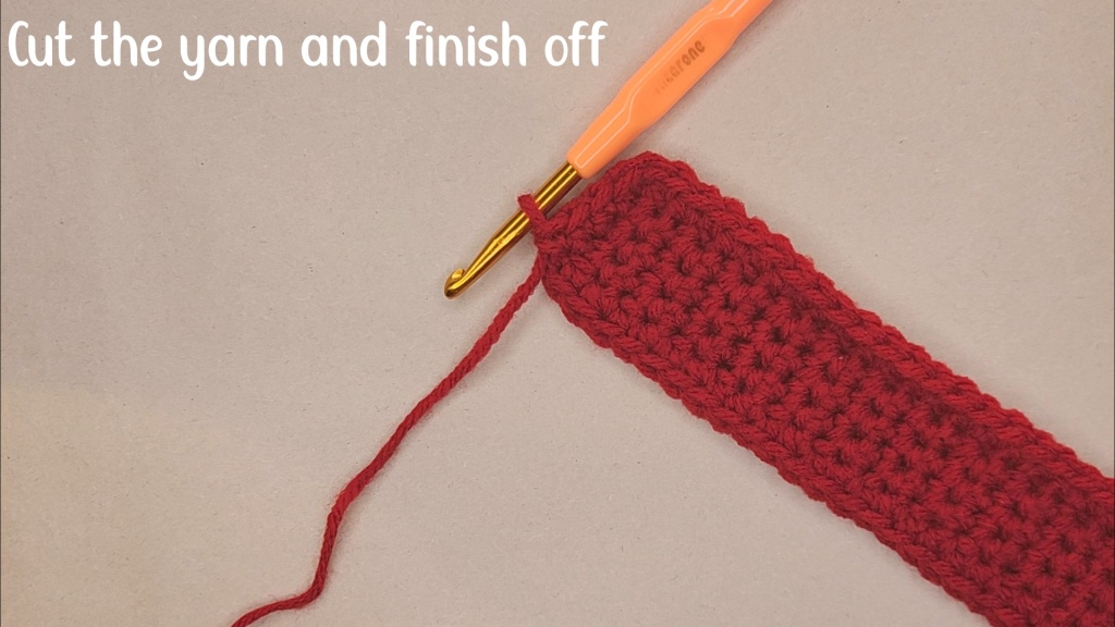 Attach the two ends of the handle together using a needle and a piece of red yarn by going through the stitches on both sides.