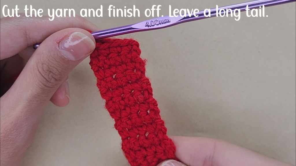 Cut the yarn and finish off. Repeat the pattern twice to create one ear. Leave a long tail for one of the circles to stitch the two sides together