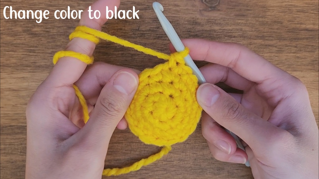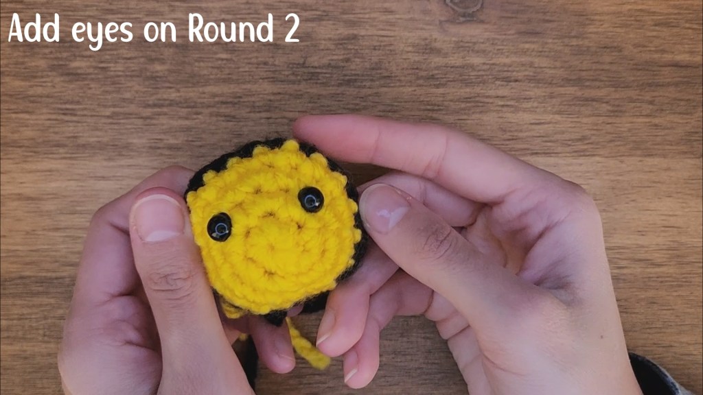 Add the safety eyes on Round 2. The eyes should be 3 stitches apart.