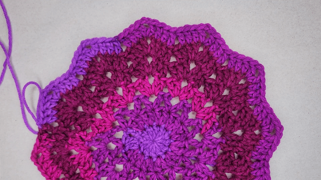 NOTE: In Round 7, the point of the star is [dc, ch2, dc] instead of [2dc, ch2, 2dc]. This is going to be a decrease Round to make the blanket stop curling at the sides.
